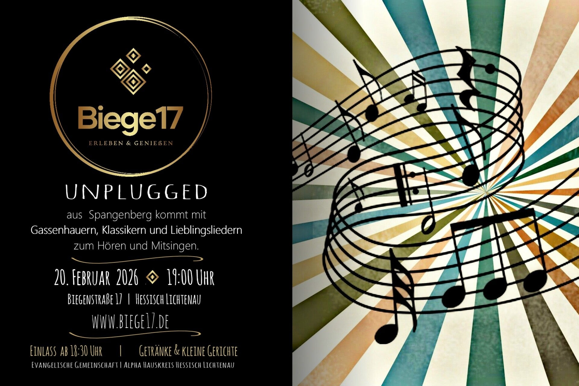 Biege17 ist ein Gemeinschaftsprojekt von Christen der Evangelischen Gemeinschaft, der Evangelisch-Freikirchlichen Gemeinde und des Alphahauskreises Hessisch Lichtenau.